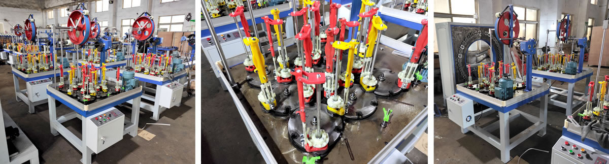 It is suitable to braid various sealing packing (such as asbestos, aramid, graphite ceramics and other materials). The machine models include 8 spindles on three tracks, 12 spindles on three tracks, 18 spindles on three tracks, 24 spindles on four tracks and 36 spindles on six tracks. The machine stures include two forms as normal braiding and inverted braiding